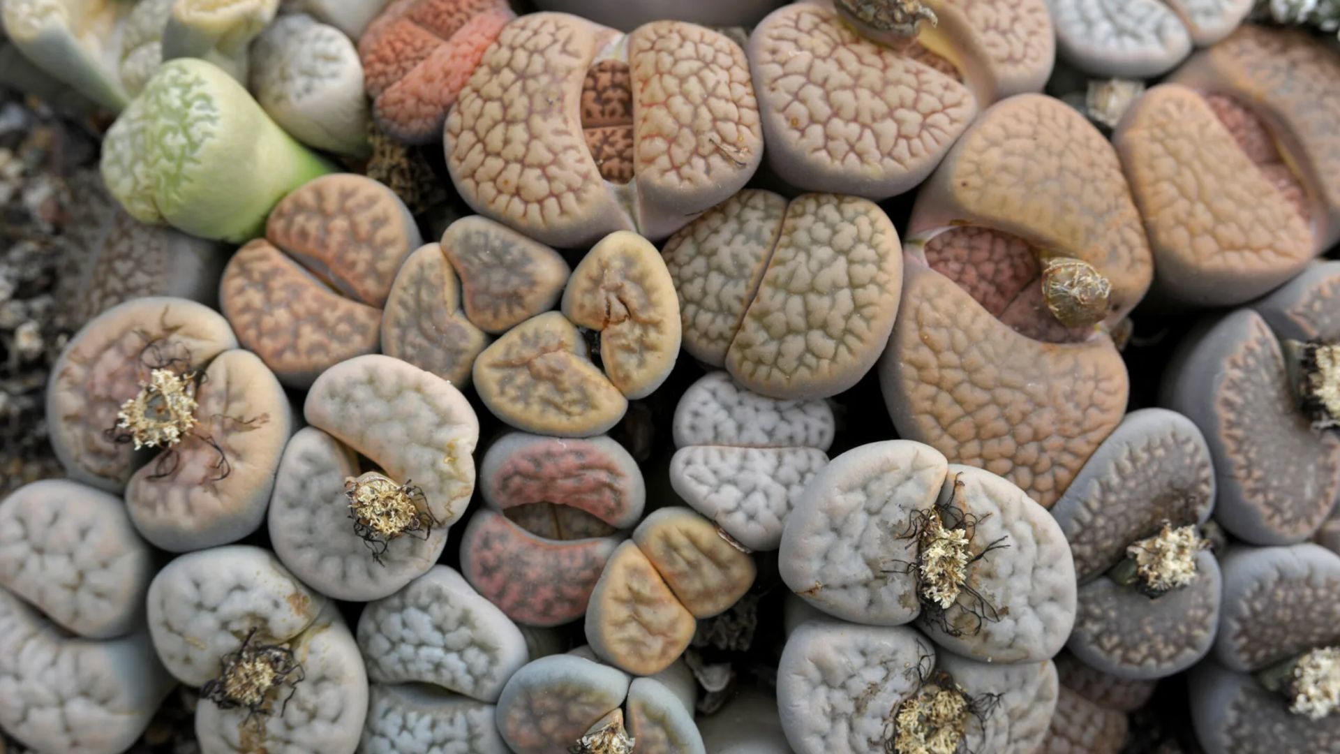 Lithops sind ein Beispiel für Mimese bei Pflanzen. Sie ahmen in Form und Farbe die Steine in ihrer Umgebung nach und sind daher in der Ruhezeit schwerer zu finden, denn sie sind gut getarnt und ziehen sich meist ganz in die Erde zurück. In der Vegetationphase ist meist nur die Oberfläche der Pflanzen zu sehen. Die Pflanzen schützen sich dadurch vor der extrem hohen Sonneneinstrahlung.
