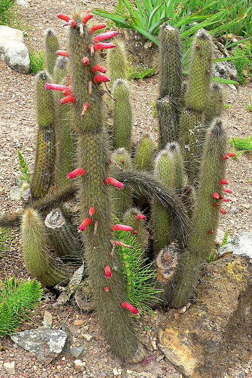 Bei einigen Arten (aus den früheren Gattungen Borzicereus und Cephalocleistocactus) erscheinen sie aus auffälligen Zonen mit starker Borsten- und Haarbildung.